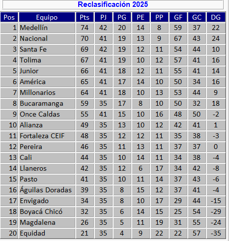 Los últimos partidos de la fase regular prometen máxima tensión y emociones fuertes, con la tabla de reclasificación Liga BetPlay 2025 como juez final del sueño internacional.