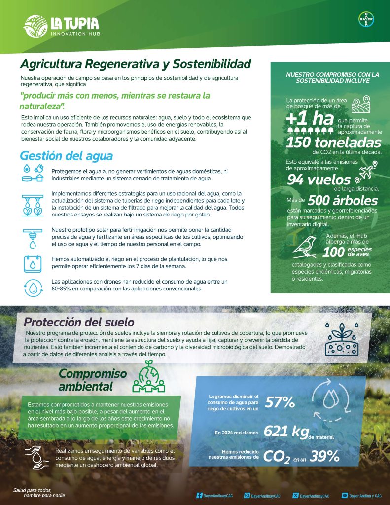 Con La Tupia y su red global de innovación, Bayer reafirma su compromiso con una Agricultura Regenerativa que transforma la manera de producir alimentos, protege los recursos naturales y mejora la calidad de vida de los agricultores y sus comunidades.