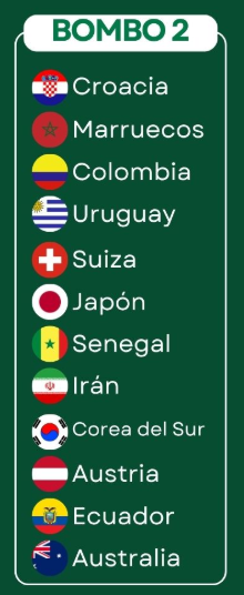 Los bombos quedaron definidos y; por lo tanto, ya se conocen los países que serán cabezas de serie, así como los países que integrarán los restantes tres bombos.